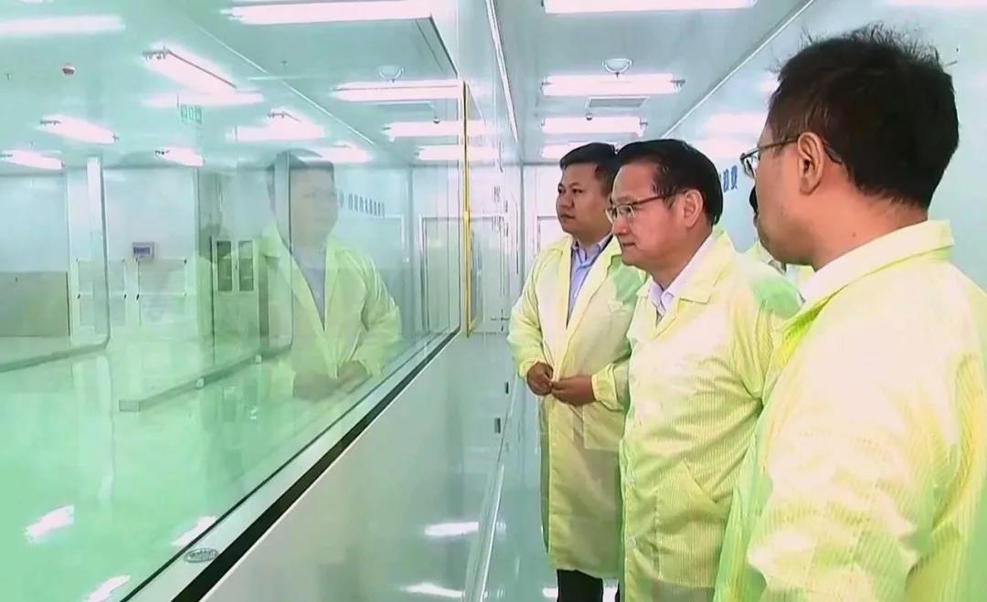 在公司展廳,易省長認(rèn)真聽取了公司生產(chǎn)經(jīng)營和建設(shè)規(guī)劃情況介紹,詳細(xì)了解公司建設(shè)進(jìn)展、生產(chǎn)研發(fā)現(xiàn)狀和未來規(guī)劃。隨后,考察組一行前往生產(chǎn)車間進(jìn)行參觀。金章育就車間布局規(guī)劃、產(chǎn)品性能、設(shè)備及研發(fā)投入情況做了簡要介紹。易省長仔細(xì)察看運作中的設(shè)備儀器,觀摩生產(chǎn)工藝流程,對公司生產(chǎn)現(xiàn)狀表示了肯定。