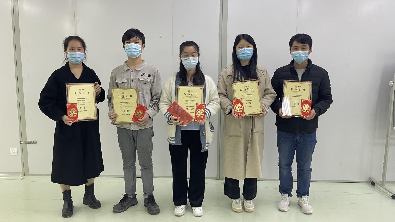 本次知識競賽分為初賽、半決賽及決賽,由于疫情影響,為響應疫情期間不聚集,初賽采用線上試卷模式,從55名選手中根據考試分數由高至低晉級18位進入半決賽。半決賽和決賽采用分組形式,每輪比賽均設置了“各顯身手”(個人必答)和“爭分奪秒”(個人搶答)兩個環節。競賽中,各參賽選手沉著應對,回答流暢,而搶答環節將比賽氣氛推上了高潮。在搶答環節中,選手們快速謹慎作答,你追我趕。經過幾輪激烈角逐,最終來自企業發展部的任美娟榮獲本次競賽的冠軍,品管部袁單琴、樊考輝、生管部蔡龍榮及安環部王紅蕾獲得本次競賽亞季軍。至此,本次企業文化知識競賽圓滿落幕。