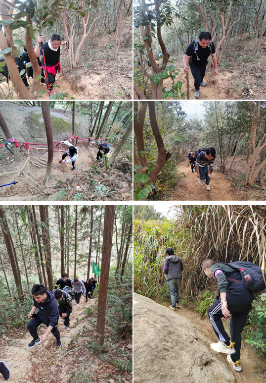 陡峭的山路,嶙峋的怪石路障,近乎垂直的崖壁……老四坡顧名思義四個坡,一個坡比一個坡險峻,難度遠比大家預想的艱巨。乾照精英們并沒退縮,成員間相互鼓勵,相互扶持,大家帶著信念的戰旗,一路爬坡,一路登頂。風聲、腳步聲、呼吸聲、加油聲,大家感受著來自團隊的力量。中午在雷公壇匯合,短暫的就餐休整后,各參賽隊伍重回賽道,奮進再出發,最終順利完成余下的挑戰。