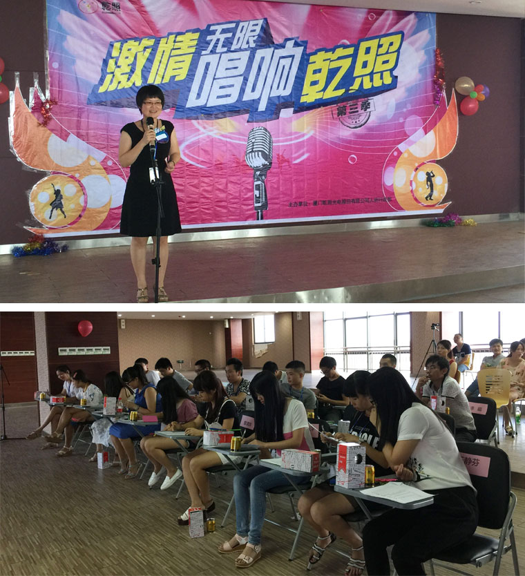 該比賽在辦公樓8樓大禮堂舉行,雖然沒有專業(yè)的場地,但負(fù)責(zé)此次活動的組委會成員各揚(yáng)己長,設(shè)計(jì)海報(bào),宣傳報(bào)名、布置場地,選拔主持人、拉贊助等,實(shí)現(xiàn)了小制作,大實(shí)現(xiàn)的效果。組委會還給選手評委準(zhǔn)備貼心小禮物,讓大家由衷地感受到他們的用心。本次比賽不僅是為大家提供展示歌唱風(fēng)采的舞臺,更讓大家感受到了乾照這個大家庭的溫馨,推動了我司員工精神文明的建設(shè)。讓我們期待下一季的歌唱比賽吧!