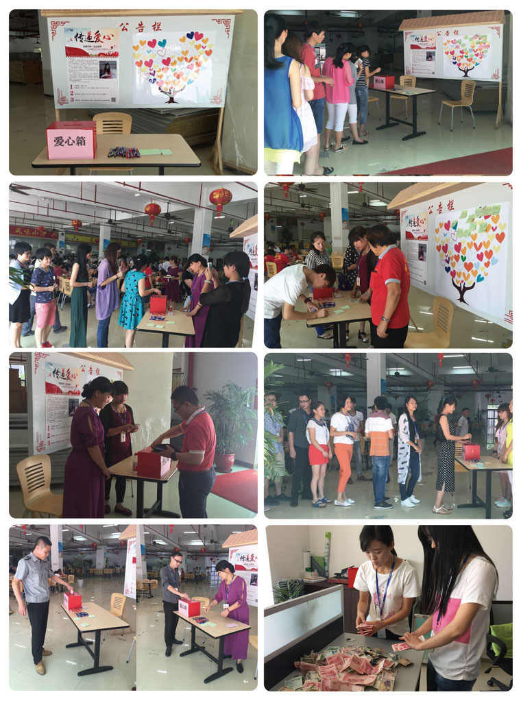在得知侯劉寶華罹患胃癌的消息后,公司領導高度重視,第一時間前往醫(yī)院探望慰問,帶去了大家的問候和公司的慰問金。隨后,人資行政部向全公司發(fā)出募捐倡議書,開通三個愛心通道(現(xiàn)場募捐、銀行轉(zhuǎn)賬、微信轉(zhuǎn)賬)。所有乾照人,包括駐廠工作的合作廠商紛紛慷慨解囊,捐款相助,傳遞著愛與正能量。很多同事還在愛心墻上寫滿祝福語,希望劉寶華能早日康復。截至到8月底,據(jù)人資行政部的不完全統(tǒng)計,已累計向?qū)毴A提供愛心捐款50924元。還有很多員工把捐款通過銀行轉(zhuǎn)賬和微信支付打入劉寶華本人。